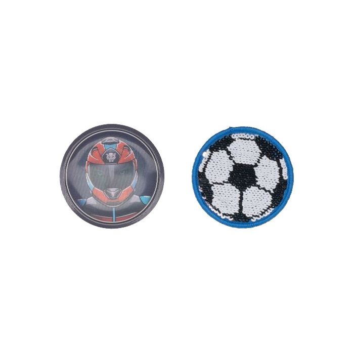 Pack med två velcro badges till Beckmann skolryggsäckar. Motiven är Smiley och Fotboll i glittrande design som ändrar utseende när man drar handen över ytan. Badges fungerar dessutom som reflex och gör dig mer synlig i trafiken.