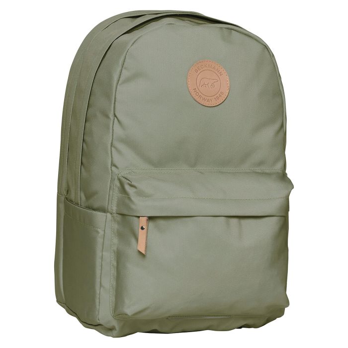 Beckmann City 30L är en mångsidig ryggsäck för skola och vardag. Den har ett separat fack för laptop eller tablet, sidofickor för vattenflaska och ett integrerat regnskydd i botten. Ryggpanelen är ventilerad för bättre luftcirkulation och materialet är vattenavvisande, tillverkat av återvunna fibrer.