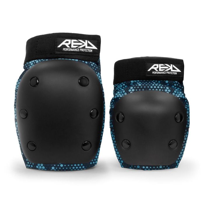 REKD Protections Heavy Duty Double Pad Set ger förstklassigt knä- och armbågsskydd. Med slitstarka slagskydd, dubbla elastiska kardborreband och elastiska strumpor är dessa högkvalitativa skyddskuddar bra för ett brett utbud av actionsporter.